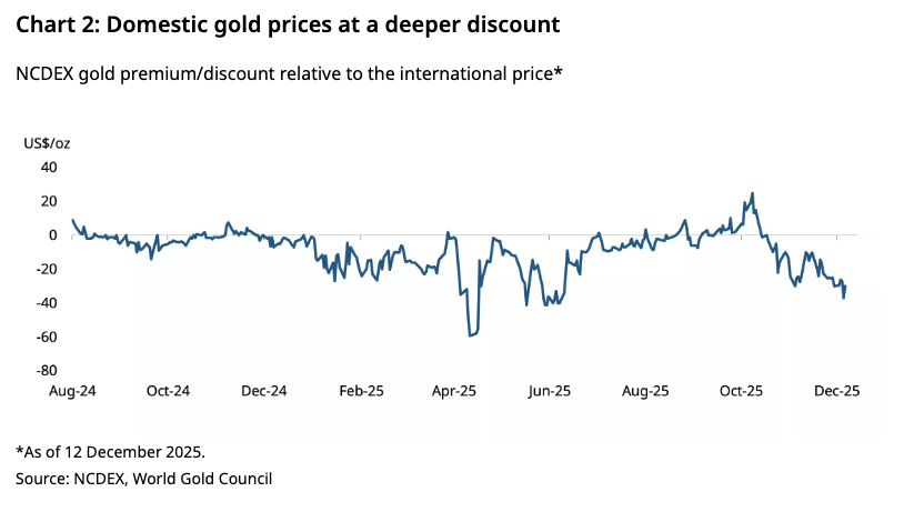 We’ve been seeing gold selling at a discount in the Indian market, and this trend accelerated in November, with the discount increasing from around $11 per ounce to nearly $30 per ounce as of December 12. According to the World Gold Council, this reflects a slowdown in jewelry demand.