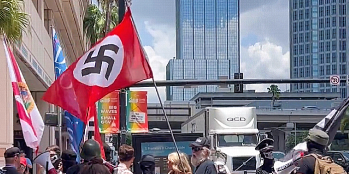 Unhinged Dems Fly Nazi Flags Outside Disney, Try to Frame DeSantis